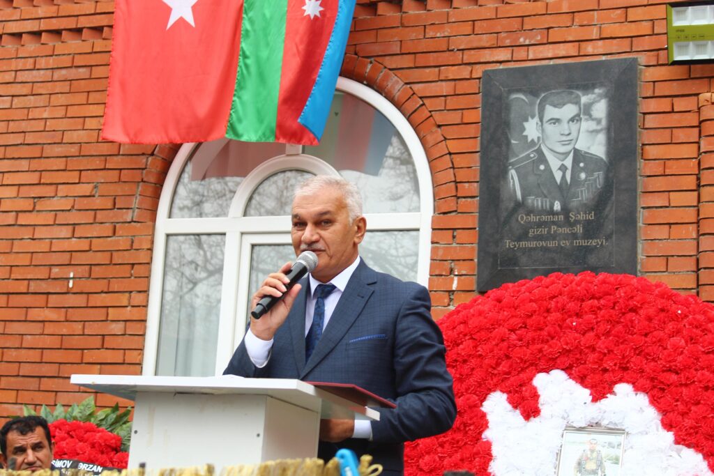 Lənkəran şəhər Heydər Əliyev Mərkəzinin direktoru Reyhanə Sadıxova çıxış edərək şəhid Pəncəli Teymurovun qəhrəmanlığını, Vətən uğrunda göstərdiyi fədakarlığı vurğuladı. O, çıxışının sonunda Lənkəran şəhər Heydər Əliyev Mərkəzinin rəsm studiyasında şəhid Pəncəli Teymurovun kətan üzərində çəkilmiş portretini ailəsinə hədiyyə etdi.